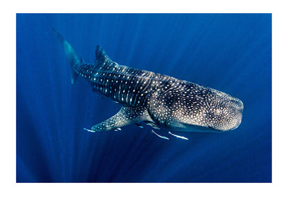 A close encounter with Earths largest fish, a Whale Shark. Incredibly, this species has barely changed throughout its presence in the fossil record over tens of millions of years. Whale Shark skin is covered in dermal denticles, v-shaped structures that reduce drag and turbulence enabling the giant fish to swim faster using less energy. Ningaloo Reef, Western Australia.