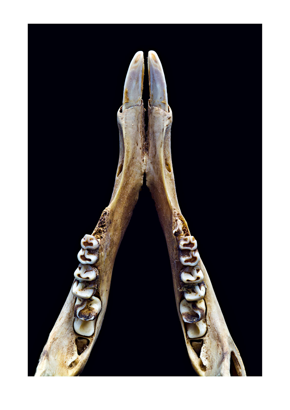 A Red Kangaroo jaw manible and teeth in a museum archive. Melbourne Museum, Victoria, Australia.